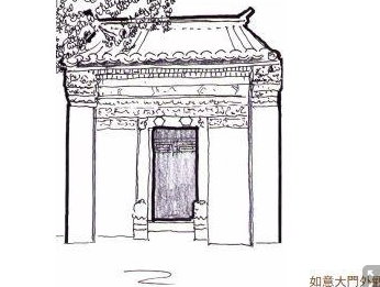 如意大門:如意門裡的住戶一般是在政治上地位不高,卻非常殷實富裕的士民階層。他們往往買下原本是廣亮大門的宅子,自己覺得用此種大門不夠格,於是把門扇往前推了。為了安全,又把門扇兩邊都砌成磚牆,使得門窄了很多。門變窄了,還能如何顯示自己的富足呢?於是主人就在門楣的上方做了大量細緻複雜的磚雕,如此把原本不大的門裝點得豪華起來。