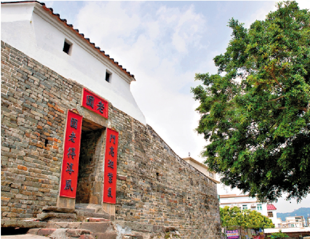 香港新界背山面海的地理格局,既提供了魚鹽之利,同時也帶來了颱風、瘴癘與海盜威脅。明朝建立後,香港沿海地區在很長時間內成為倭寇與海盜的劫掠重鎮。洪武年間,張士誠殘部與倭寇劫掠珠江口,僅一四一四年就發生過十七次襲村事件。朝廷雖設「南頭寨」水師(今深圳南頭),但兵力薄弱,勝少敗多。為此,民間不得不設法自保。村民們大規模加築高牆、挖掘護城河,並增設鐵門與瞭望台。例如元朗吉慶圍以青磚砌築六米高牆,四角炮樓可架設炮台,牆基用花崗岩加固,形成「一村一要塞」的格局;粉嶺龍躍頭老圍更在圍牆正中建瞭望台,其東門鐵閘重達三百斤,需六人合力啟閉,形成「一圍抵千軍」的威懾力。此時的圍屋,已從家族聚居地演變為軍事要塞,牆體採用「金包銀」工藝(外層青磚、內層夯土),厚度可達一米,甚至可抵禦火器攻擊。