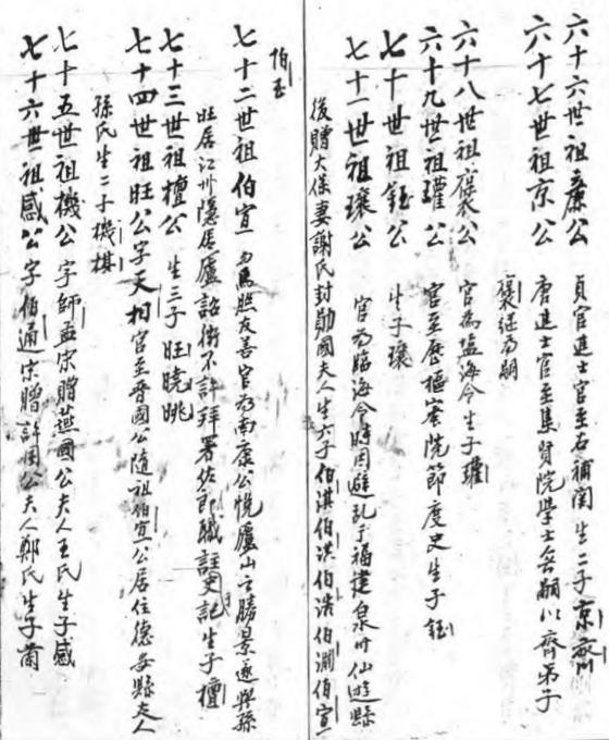 二十世祖:東華公,生於康熙乙酉年(1705),卒於乾隆戊戌年(1778)。生二子新振、倫振,均派口房。