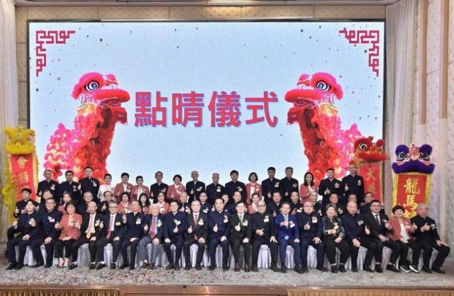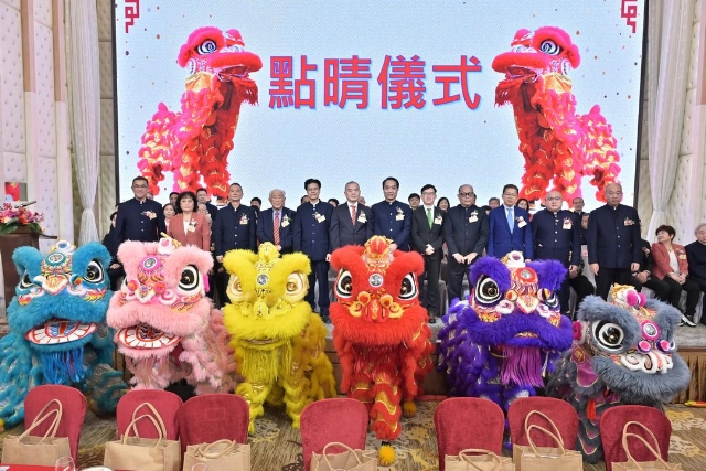 主禮嘉賓們為醒獅點睛簪花掛紅。