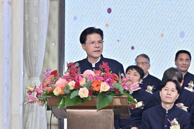 主禮嘉賓胡健民頒發永遠榮譽理事、永遠名譽理長、名譽理長委任狀,宣教部主任陳仲宣代表接受。