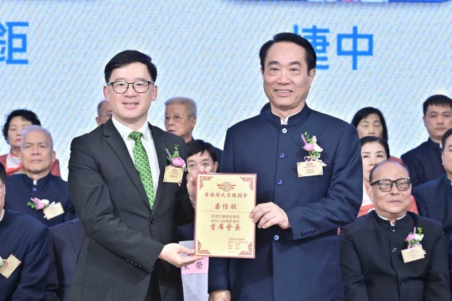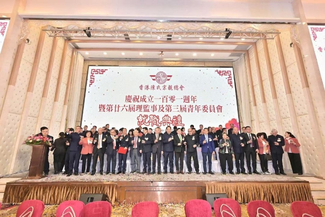 成立 101周年的香港陳氏宗親總會昨晚(10月24日)舉行第廿六屆理監事及第三屆青年委員會就職禮。活動在九龍灣宏天廣場舉行。陳榮旋榮任首席會長,陳燕南榮任新一屆會長,陳老二榮任理事長,陳志忠任監事長,陳英棋榮任青委主任。