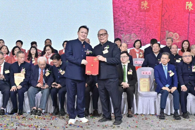 年逾九旬的首席會長陳守仁博士以書面致辭表示,感恩百年前先輩創立宗親會,以「血脈相連、守望相助」的信念,為後人建構了凝聚親情的家園。歷屆宗親無私奉獻、出錢出力確保宗親會得以持續發展。「敦親睦族、敬老尊賢、扶危濟困、光耀門楣」是宗親會屹立不倒的基石,凝聚宗族力量。