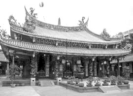 台灣廟宇的正殿為供奉主祀神之所,其建築單體在建築組群中顯得較為雄偉(台北大龍峒保安宮)。