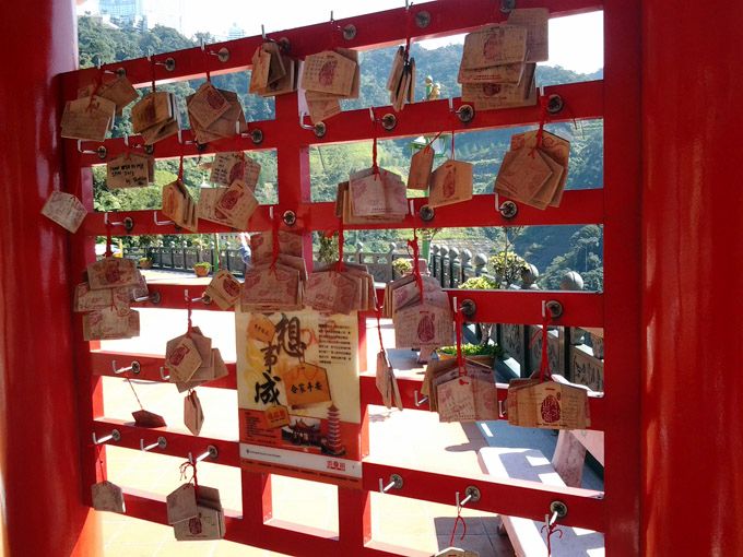 從底層四大天王廟到13層觀景台的觀光電梯內指示牌