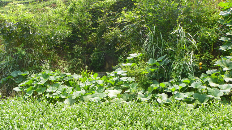 到洋頭村口道路分三岔,我們沒有進村,直接左拐前往福地。在茶山間走了