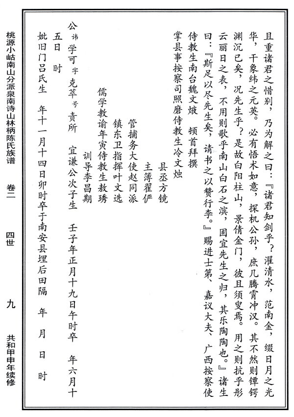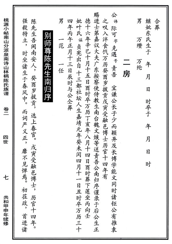 詩山林柄陳氏族譜