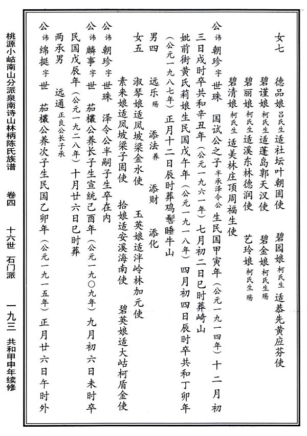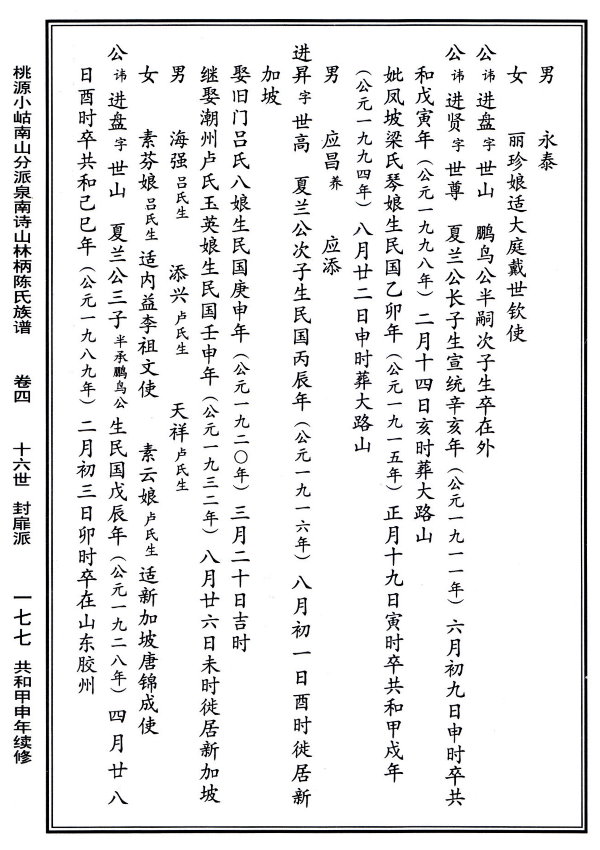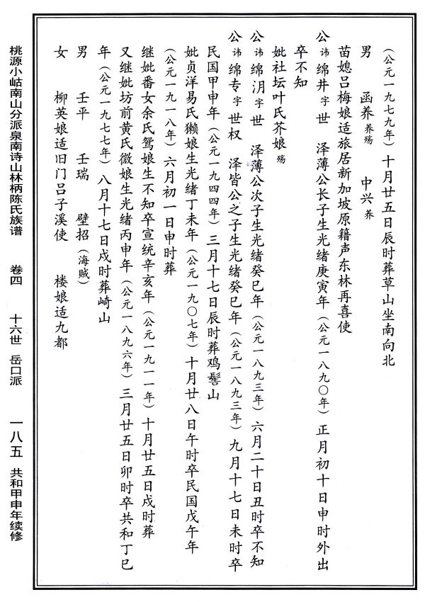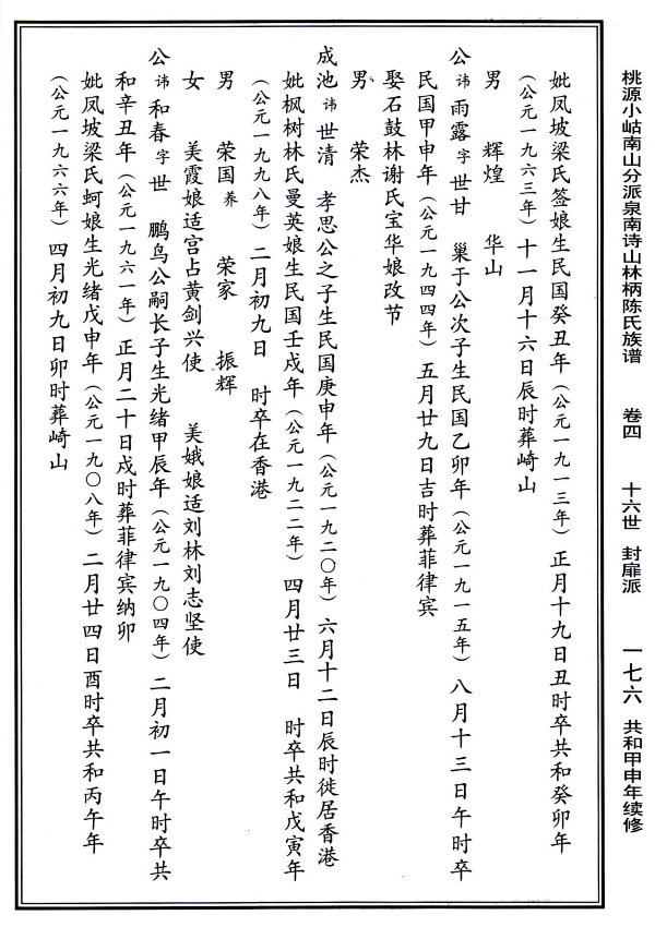 詩山林柄陳氏族譜