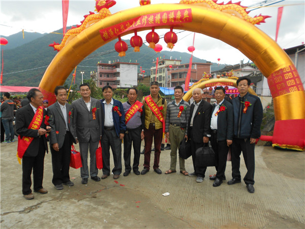 福建省陳氏委員會常務副會長陳聲隆代表陳氏委員會,永春縣文化聯誼會陳堅全會長先後向修譜慶典大會表示熱烈祝賀。並向仁莊及到會宗親表示親切問候、向修譜理事會宗親致敬!本次修譜成功是海內外族親通力合作的結果,是所有理事會成員心血凝成的結晶,其意義重大深遠,它使我族子孫知道來源,世親分派,昭穆不亂,在血緣上心靈與遠祖溝通,追溯先祖開創的艱辛,激發族親發揚光大,開拓進取,共圖偉業。為偉大祖國繁榮富強振興中華作出更大功獻!陳聲隆代表陳氏委員會,還送上由祠堂文化研究會秘書長陳若航書法家墨寶《傳家至寶垂裕後昆》大會上還頒發了榮譽證書,會後,豐盛的午宴接待來自遠方的“一家人”。
