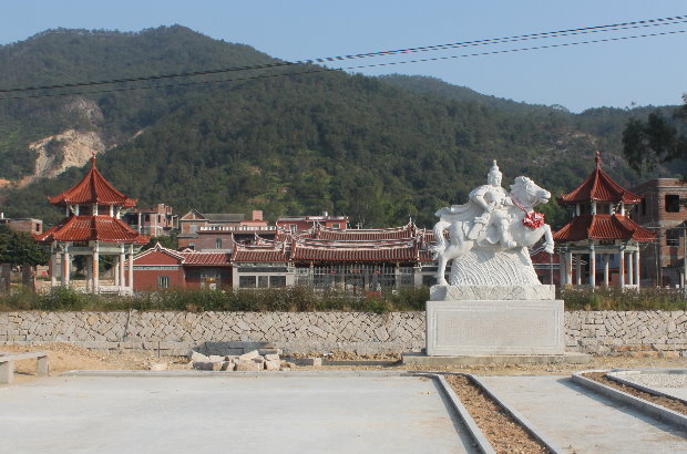 286平方米的附埕。附埕前有一口2170平方米的大水池,其左右兩端築有二層八角的“思源亭”和“思鄉亭”各一座。池中築有一層六角形的“樂觀亭”一座。祠堂祖宇二邊築仿古建築護厝八百平方米。周邊通道長一百六十米。寬五米,圍墻一百八十米,停車場二百平方米。並築建宏偉氣派的南北山門二座,分別配套長一百八十米和一百五十二米,寛六米的水泥路兩條,與洪六公路緊連,取名“茅霓南路”和“茅霓北路”。近年來,名門科第,望族世家的僑親、港胞義舉公益,解囊巨資,籌建“科第世家”公園五千多平方米,配備體育健身場所,園內屹立陳瑞山平越騎馬石像一尊,石塔、石亭各一對,燈光球場,噴水池,風景樹木,花草等集為一體。堪稱環保型的綠色公國。